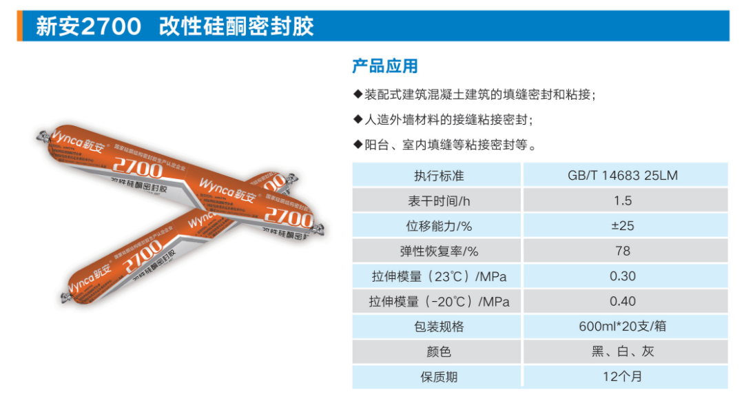 作為綠色建筑行業(yè)的主要細分產(chǎn)業(yè)之一,近年來裝配式建筑市場規(guī)模保持著較快的增速,裝配式建筑膠市場也得到較快發(fā)展。新安2700改性硅酮密封膠因其良好的粘接、耐候、位移能力及可涂刷性等性能,獲得市場的青睞和認可。